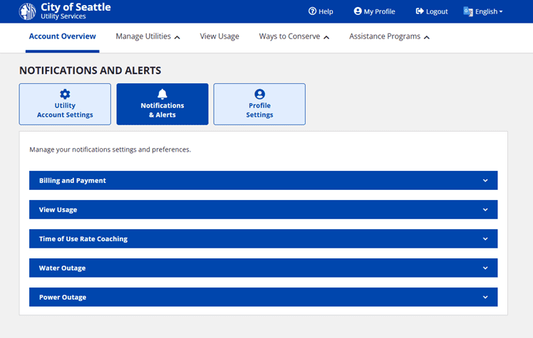 STEP 3: Click the Notifications & Alerts tab to expand the Power Outage dropdown list to view your power outage notification settings.
